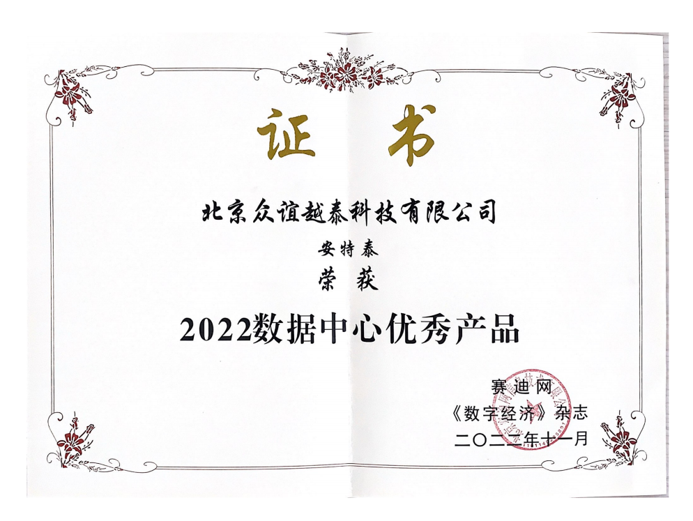 众谊越泰安特泰数据中心系列产品获评赛迪网“2022数据中心优秀产品”
