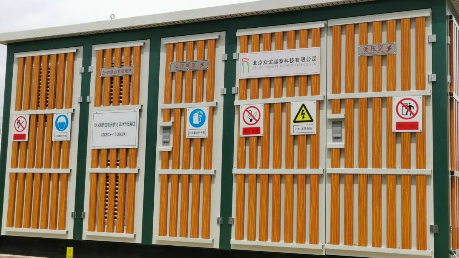 众谊越泰在本项目中承建两套1500kVA箱式变电站,它是一种集成高压配电、变压器、低压配电等功能于一体的紧凑型电力设备,主要用于电力系统的电能分配、转换和控制。作为能源发电输送的关键节点,箱式变电站将光伏能源转换到10kV电压等级后,接入至上级电网,再通过上级电网将光伏电能分配至各用电车间,此方式极大缓解电网末端的供电压力,提升供电效率。